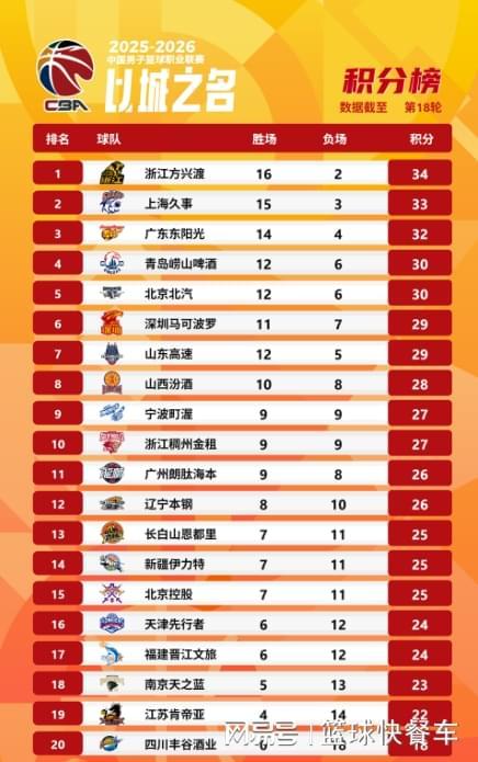 积分榜第13名则是吉林队,他们的战绩则是7胜11负,下一轮比赛,一旦吉林队赢球的话,他们便有望超越辽宁队,杀回积分榜前12名。而第14名则是新疆队,他们的战绩也是7胜11负。第15名则是北控队。第16名则是天津队,第17名则是福建队,他们的战绩都是6胜12负。第18名则是同曦队。排在第19名则是江苏队,战绩为4胜14负。而排名积分榜垫底的是四川队,他们已经遭遇18连败。